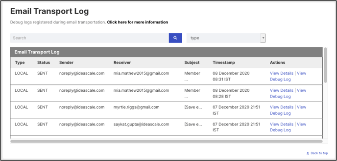 When email settings are being set up or in the event emails aren't behaving as expected, Email Transport Log helps to get further insight into the internals of the email transaction.