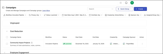 Finding the right campaign in a long list shouldn't require scrolling and squinting. New quick filter options are coming to the Campaign Management view, making it significantly faster to locate specific campaigns.